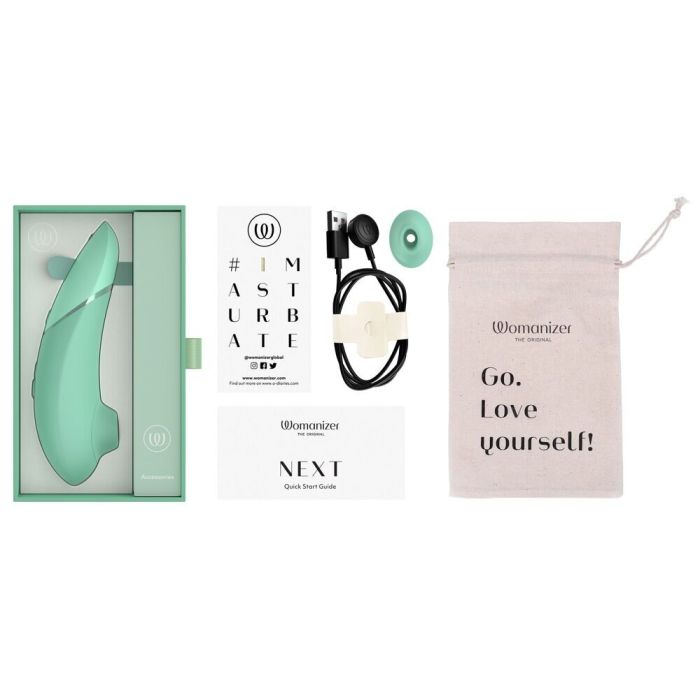 Корпус Womanizer Next Sage має матове покриття, зручну ергономічну форму та добре лежить у руці. Пристрій працює до 240 хвилин на одному заряді, а повна зарядка займає приблизно 120 хвилин. Завдяки водонепроникності (IPX7) його можна використовувати під час водних процедур — у ванні, душі або джакузі.