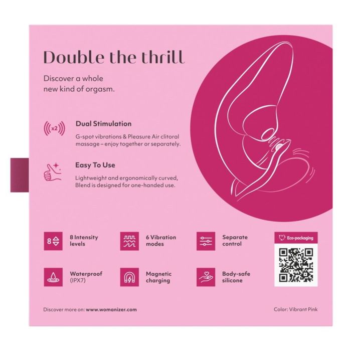 Вагінально-кліторальний стимулятор Womanizer Blend Vibrantпідходить для тих, хто шукає продуманий девайс для змішаних оргазмів із можливістю індивідуальних налаштувань.