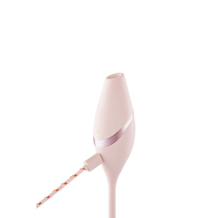 Пульсатор забезпечує глибоку внутрішню стимуляцію, а вакуумний стимулятор створює спрямований вплив на клітор. Обидва мотори працюють незалежно — можна використовувати їх окремо або одночасно.