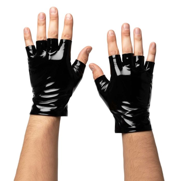 Лаковані чоловічі рукавички без пальців Art of Sex - Jeyson, колір чорний, розмір M