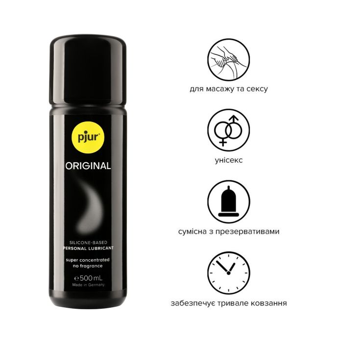 Універсальний лубрикант на силіконовій основі pjur Original 500 мл добре підійде тим, хто шукає надійний силіконовий лубрикант для тривалих інтимних ігор і чуттєвого масажу з приємним доглядальним ефектом для шкіри.